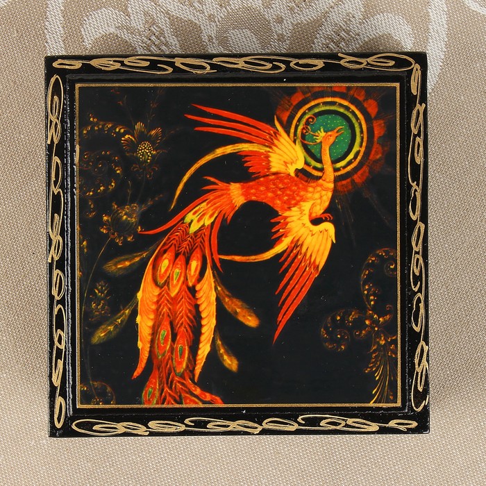 Шкатулка «Жар-птица», 10×10 см, лаковая миниатюра