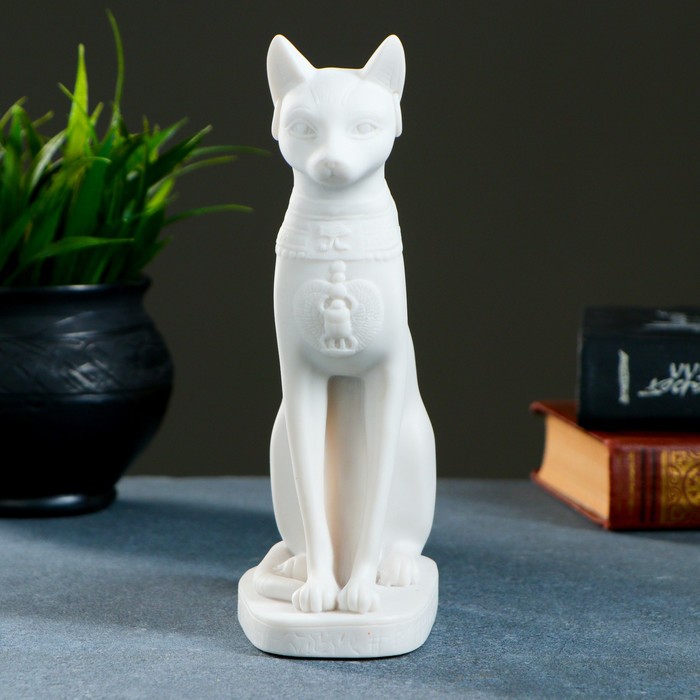 Фигура "Кошка египетская" 19х11см, белая / мраморная крошка