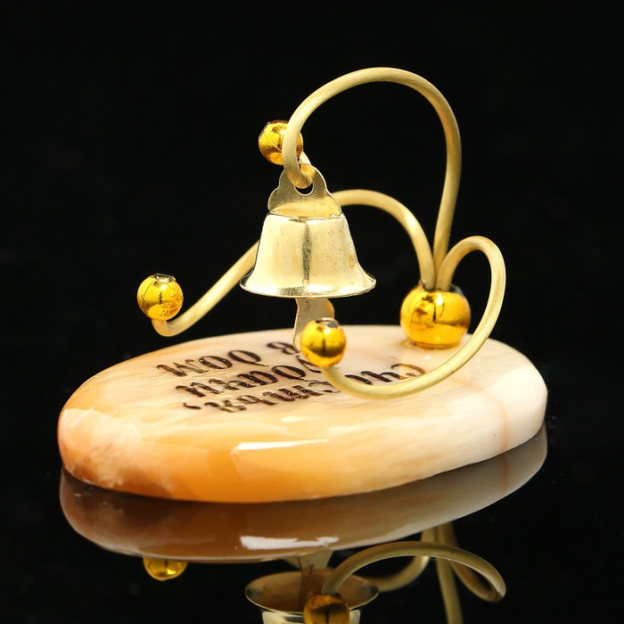 Оберег «Колокольчик», счастья, удачи в дом станет замечательным подарком для коллег, друзей или родных. Он изготовлен из натурального камня, на нелицевых поверхностях допускаются незначительная пористость, волнистость, следы инструмента.