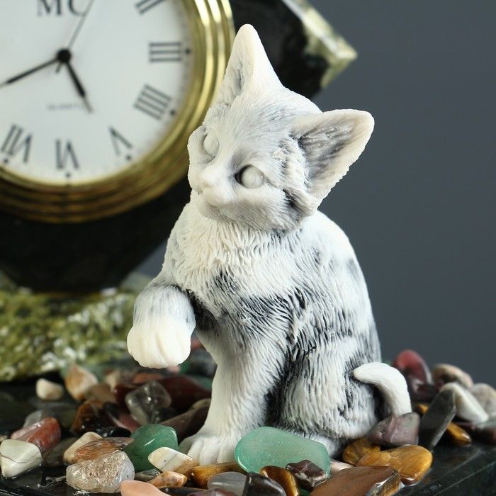Часы "Кошка", змеевик, мрамолит