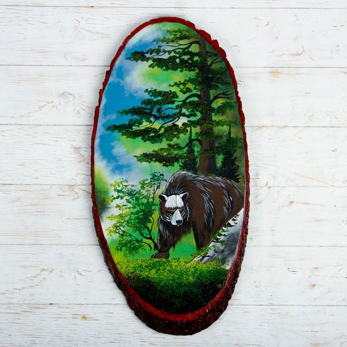 Панно на спиле "Лето. Медведь", 57-62 см, каменная крошка, вертикальное