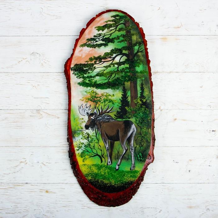 Панно на спиле "Лето. Лось", 57-62 см, каменная крошка, вертикальное