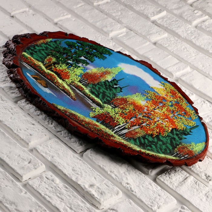 Панно на спиле "Осень" 60 см, каменная крошка, горизонтальное