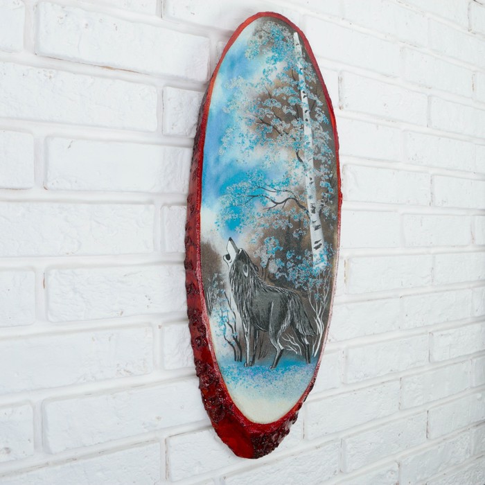 Панно на спиле "Зима.Волк", 52-56 см, каменная крошка, вертикальное