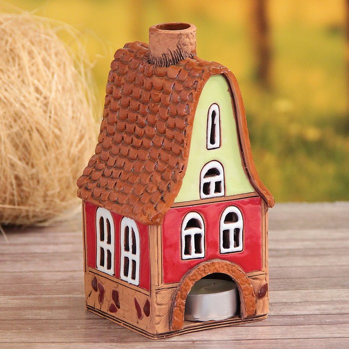 Выбирая аромалампу в виде симпатичного домика, вы не только открываете для себя всё волшебство ароматерапии, но и приобретаете уникальный сувенир тонкой ручной работы. Эфирные масла заливаются в трубу домика и нагреваются способом водяной бани от свечки, вставленной внутрь. Особенно красиво такая композиция смотрится в темноте, когда сияние свечи мерцает в окнах домика, создавая неповторимую атмосферу уюта и спокойствия.