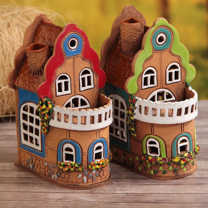 Выбирая аромалампу в виде симпатичного домика, вы не только открываете для себя всё волшебство ароматерапии, но и приобретаете уникальный сувенир тонкой ручной работы. Эфирные масла заливаются в трубу домика и нагреваются способом водяной бани от свечки, вставленной внутрь. Особенно красиво такая композиция смотрится в темноте, когда сияние свечи мерцает в окнах домика, создавая неповторимую атмосферу уюта и спокойствия.