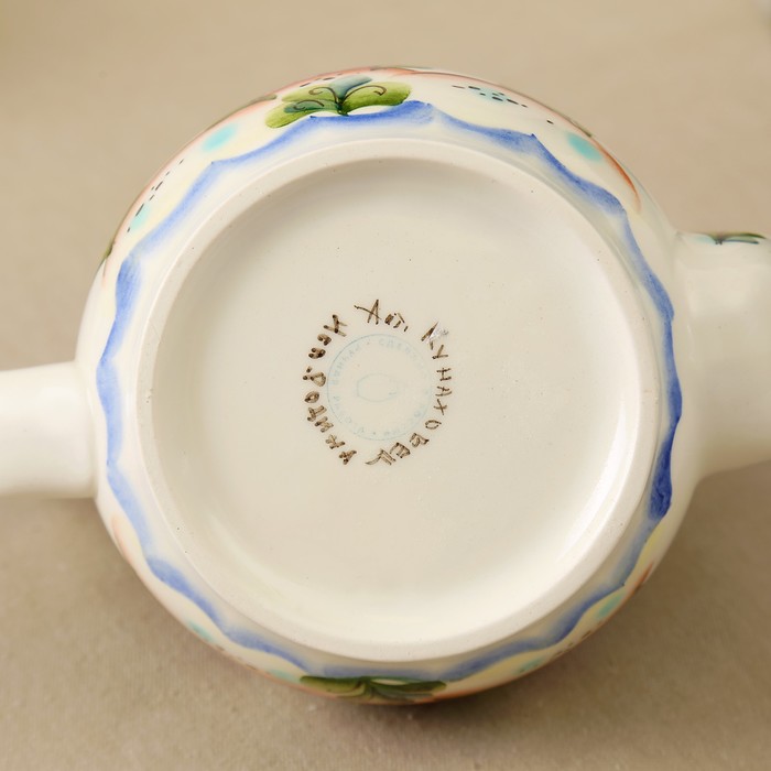 Тонкий слой стеклянной глазури защищает ручную роспись, поэтому после длительного использования изделие не утратит блеск и насыщенность рисунка.
