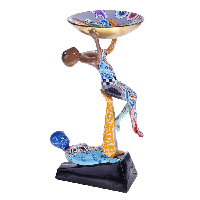 Сувенир "Акробаты" из коллекции Томаса Хоффмана, как и любая фигурка, вышедшая под маркой Tom's Company, отличается оригинальным сочетанием форм, цветов и узоров. Эти гимнасты, замершие в причудливой позе, прекрасно разместятся на полке или на столике - главное, чтобы это было видное место, ведь такой уникальный предмет интерьера просто не может оставаться в тени! Стильная и необычная, эта фигурка подарит своему владельцу множество приятных эмоций, ведь от такой красоты сложно отвести взгляд.