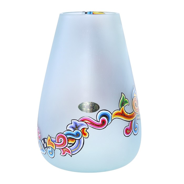 Простая форма и затейливый узор, ненавязчивое матовое стекло и яркие жизнерадостные краски - все эти противоположности причудливо слились в замечательной по своей красоте вазе Томаса Хоффмана. Вещи знаменитого немецкого дизайнера украшают не только частные дома и городские квартиры, но также бутики и ресторанчики по всей Европе и за ее пределами. Вы также можете порадовать себя одной из очаровательных вещиц фирмы Tom's Сompany. Эта ваза прекрасно подойдет как для милых и незатейливых, так и для самых оригинальных и неповторимых букетов. Окружайте себя приятными мелочами, которые будут поднимать вам настроение и дарить окружающим положительные эмоции!