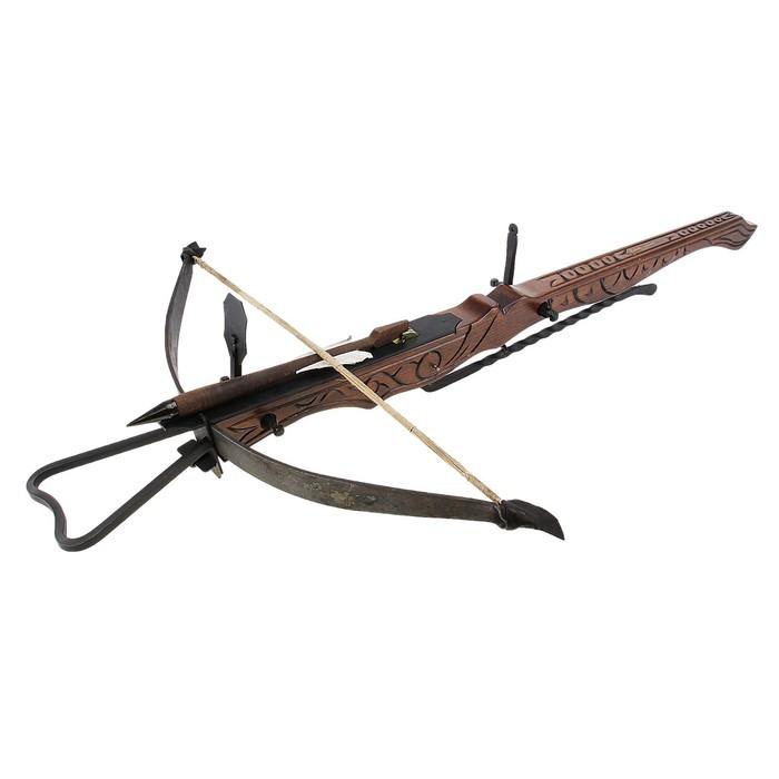 Роскошный арбалет в стиле XV-го века так и хочется поскорее взять в руки, ощутить, насколько приятно на ощупь гладкое дерево, как туго натянута тетива, как ровно лежит стрела, готовая вот-вот сорваться, со свистом пронзая воздух. Пусть перед нами – не боевое, а сувенирное оружие, но изготовлено оно с таким вниманием к каждой детали, что выглядит, словно настоящее. Порадуйте мужчину таким оригинальным подарком!