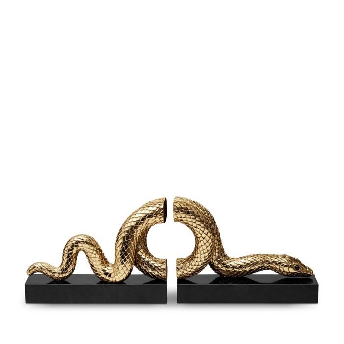 Эффектный предмет для любителей неординарных и оригинальных вещиц, а также для всех, кто обладает собственной домашней библиотекой. Держатель для книг «Змея» поможет поддерживать порядок на книжной полке или стеллаже и станет настоящим украшением комнаты. Изогнувшаяся кольцом змейка, выполненная так искусно, что можно пересчитать буквально каждую чешуйку на ее коже, позолочена. Как известно, змея – особое животное, символизирующее мудрость. Где же ей быть, как не среди книг? Заказать этот элегантный держатель вы можете в нашем интернет-магазине буквально несколькими кликами мышки.