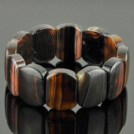 Браслет из агата на резинке. Ширина браслета 25 мм, минимальный размер изделия 19-20 см.