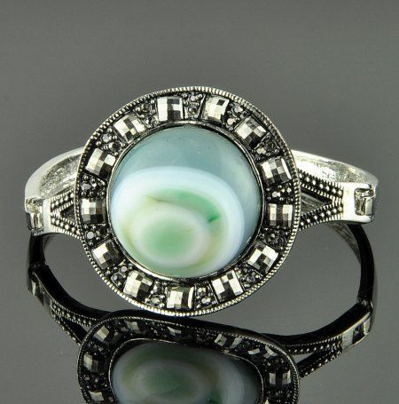 Браслет с натуральным агатом и стразами на застежке. Размер изделия 17 см.