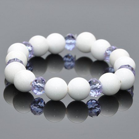 Браслет из кахолонга, хрусталя на резинке. Диаметр бусины 10 мм, минимальный размер изделия 19см.