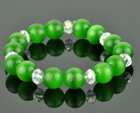 Браслет из кошачьего глаза, хрусталя на резинке. Минимальный размер изделия 18 см.