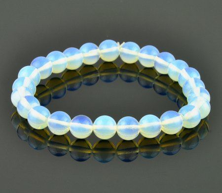 Браслет из лунного камня на резинке. Диаметр бусин 8 мм, минимальный размер изделия 17 см.