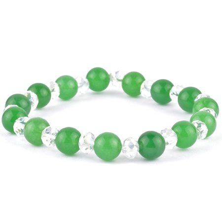 Браслет из нефрита, хрусталя на резинке. Ширина браслета 8 мм, размер изделия 20 см.