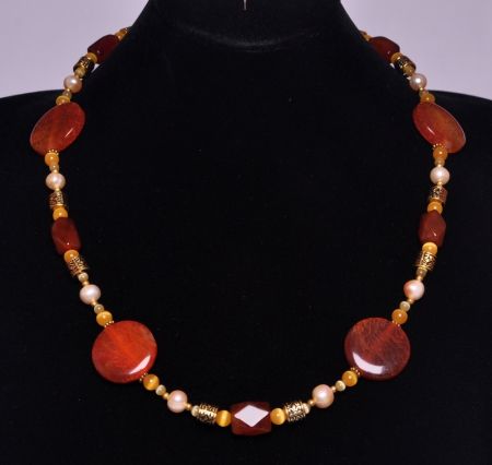 Авторские бусы Агат, Жемчуг, кошачий глаз "Золотые искры" арт.869