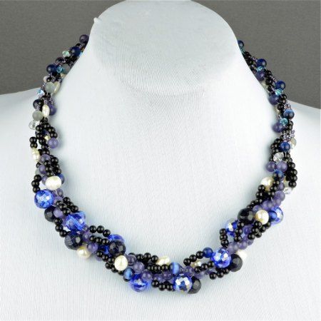 Авторские бусы из авантюрина, жемчуга, хрусталя и кошачьего глаза. Длина бус 45 см.