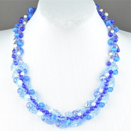 Авторские бусы из хрусталя, кошачьего глаза, жемчуга. Длина бус 52 см.