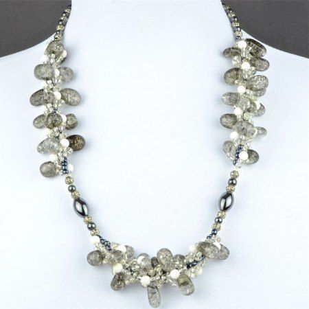 Авторское украшение из гематита, кахолонга и хрусталя. Длина украшения - 65 см;