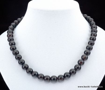 Бусы круглые из натурального граната. Диаметр бусины 11 мм, длина бус 43 см.