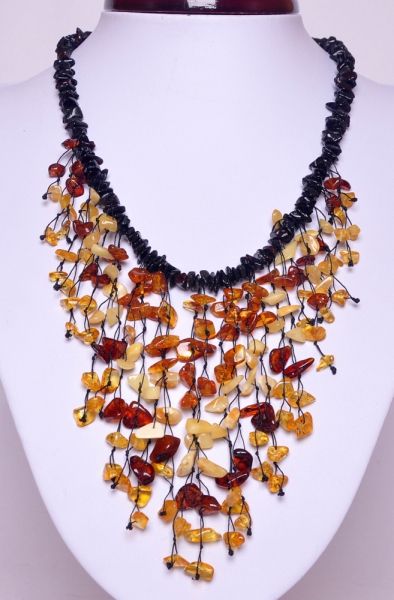 Бусы из натурального янтаря. Длина бус 43 см. Длина подвески 10 см. Порядок цветов может немного отличаться.
