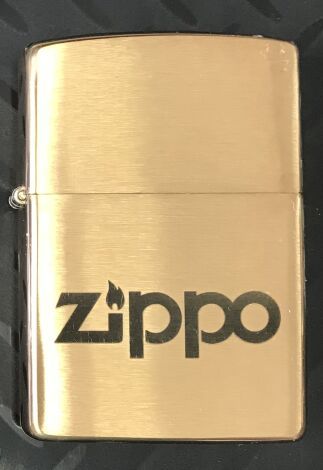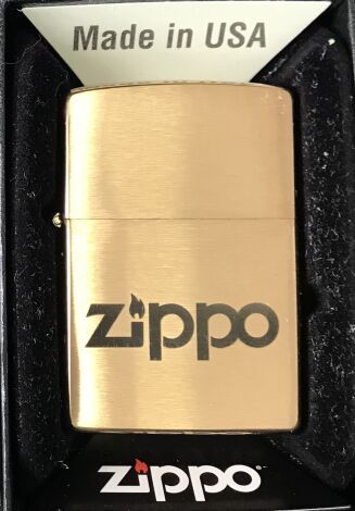 зажигалка ZIPPO с логотипом с покрытием Brushed Brass, латунь/сталь, золотистая, матовая, размером 3,8 x 1,3 x 5,7 см.