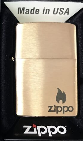 зажигалка ZIPPO с логотипом с покрытием Brushed Brass, латунь/сталь, золотистая, матовая, размером 3,8 x 1,3 x 5,7 см.